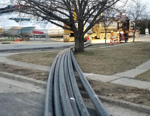 Challenges: There was a gravity sewer siphon installed on piles and cradles under the harbor with very poor as-built information in order to avoid damaging it. The drill was accomplished with the use of a gyro steering system, wire-line was not usable due to the high concentration of steel in the harbor and the ice sheet that prevented divers from installing the tracking wires.